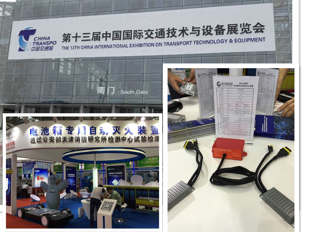 According to the standard of 《bus type classification and rating》(JT/T888-2014),the new energy vehicles should be equiped with security monitoring and management system,battery box automatic fire extinguish device,etc as security equipment. On this exhibition,Huashen has showed the early fire detection、intelligent judgement,interfere advanced,automatic extinguish upon emergency when the power battery is thermal runaway. With the feature of multisensor,full cycle fire detection,universal and predicting and warning,multilinked activating,solved the battery fire hidden trouble,provide a safest way for new energy automobiles.