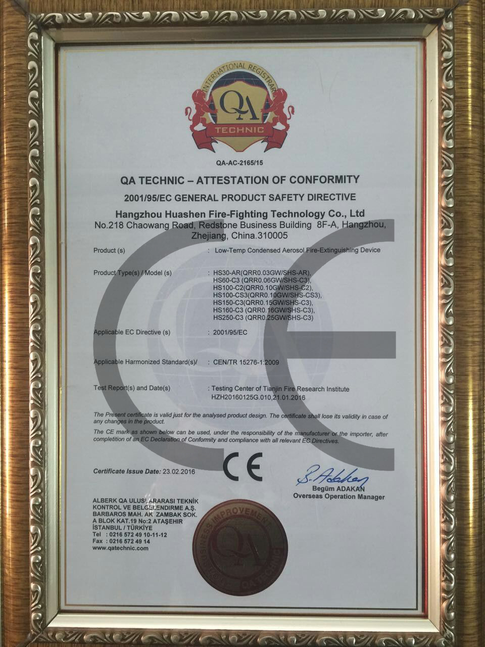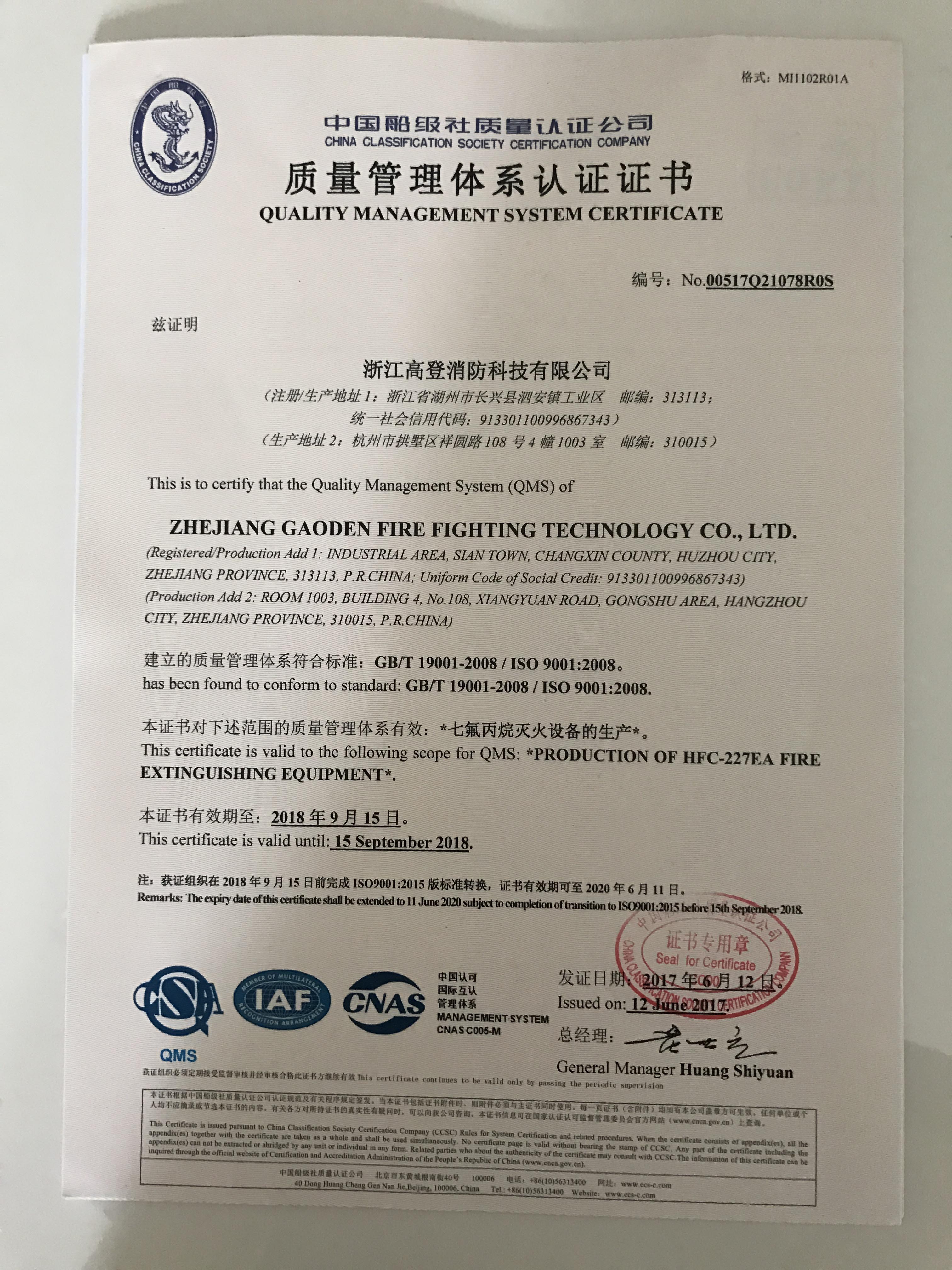 七氟丙烷“3C”證書