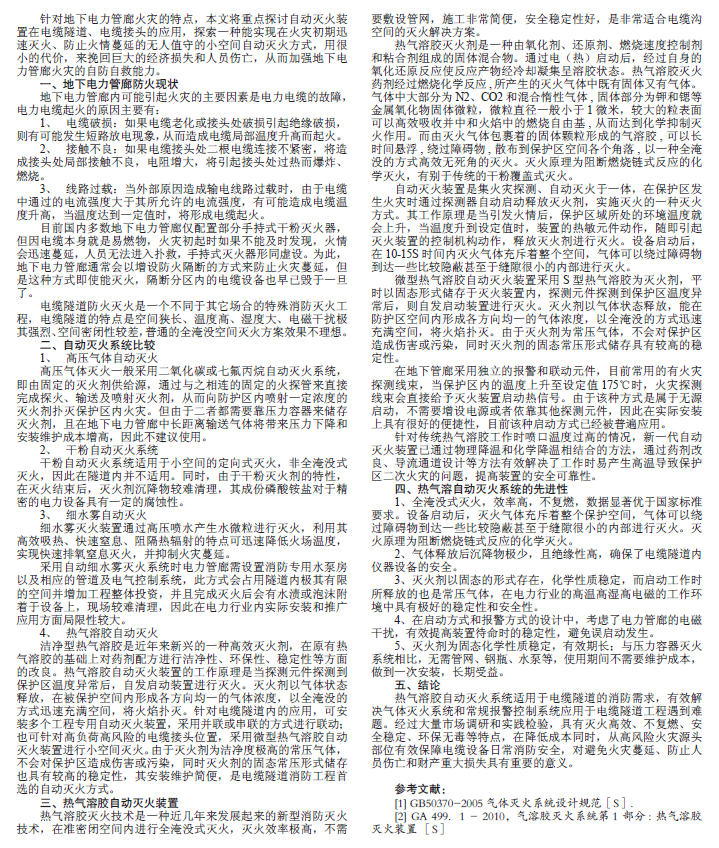 淺談地下電力管廊的自動(dòng)滅火系統(tǒng)應(yīng)用
