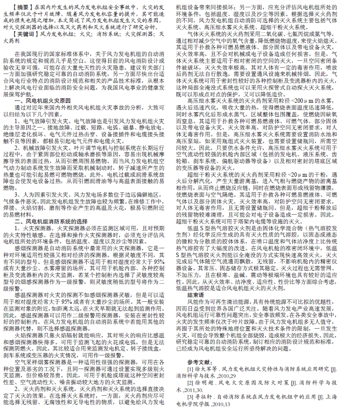 淺析風(fēng)力發(fā)電機(jī)組火災(zāi)原因及消防系統(tǒng)的選擇