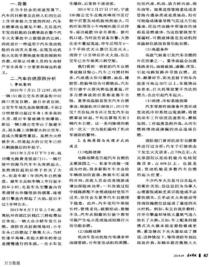 自動(dòng)滅火系統(tǒng)在機(jī)動(dòng)車發(fā)動(dòng)機(jī)艙的應(yīng)用研究