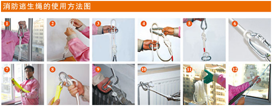 消防逃生繩的使用方法步驟圖: