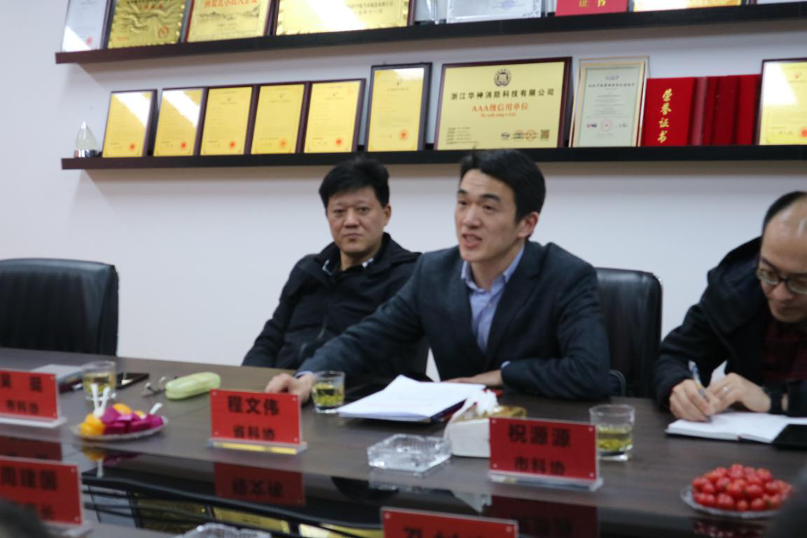 在隨后召開的座談會(huì)上,我司董事長周建國對范院士不辭勞苦蒞臨指導(dǎo)工作表示熱烈歡迎和誠摯感謝。公司副總經(jīng)理周斌向范院士匯報(bào)公司院士工作站2018年的建站情況、小微空間智能自動(dòng)火災(zāi)抑制裝置新技術(shù)交流以及省院士工作站申報(bào)情況。范院士對我司2018年建站情況、新技術(shù)科研成果表示肯定并提出戰(zhàn)略性寶貴意見,對公司申報(bào)省級院士工作站表示衷心的祝愿和充分的支持。接著,浙江省科學(xué)技術(shù)協(xié)會(huì)服務(wù)中心程文偉部長、杭州市科學(xué)技術(shù)協(xié)會(huì)吳挺主任分別發(fā)言,感謝范院士對杭州企業(yè)的支持,同時(shí)就申報(bào)省級院士工作站向我司提出寶貴意見。