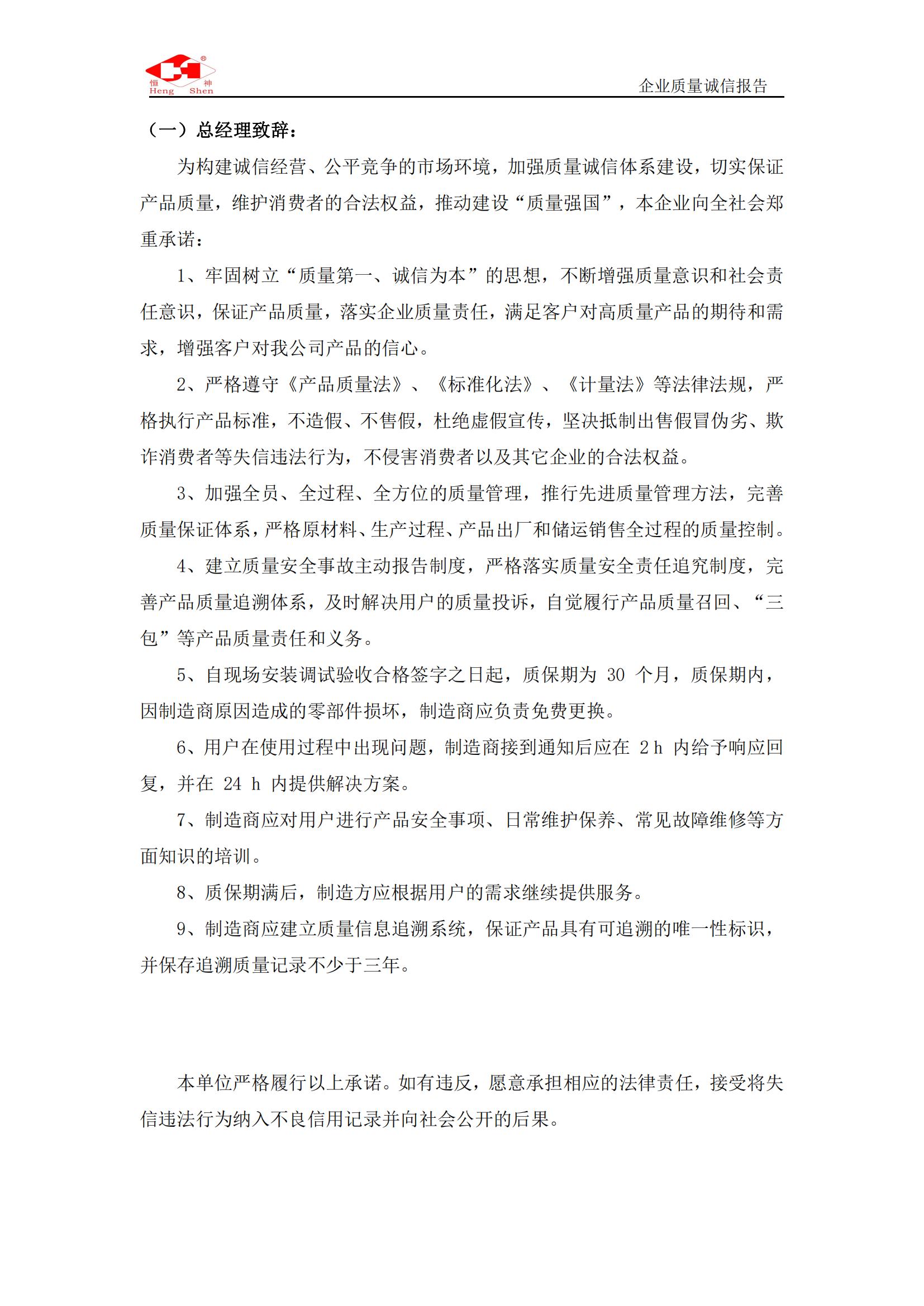 質(zhì)量誠信報(bào)告