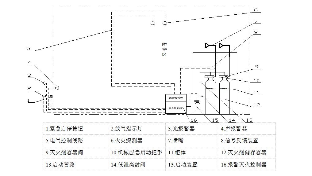 ● 該裝置的啟動方式為自動控制、手動控制和機(jī)械應(yīng)急手動控制三種。一般情況下應(yīng)使用手動控制,在防護(hù)區(qū)無人的情況下可以轉(zhuǎn)換為自動控制,當(dāng)自動控制和手動控制不能執(zhí)行時(shí),應(yīng)采用機(jī)械應(yīng)急手動控制。